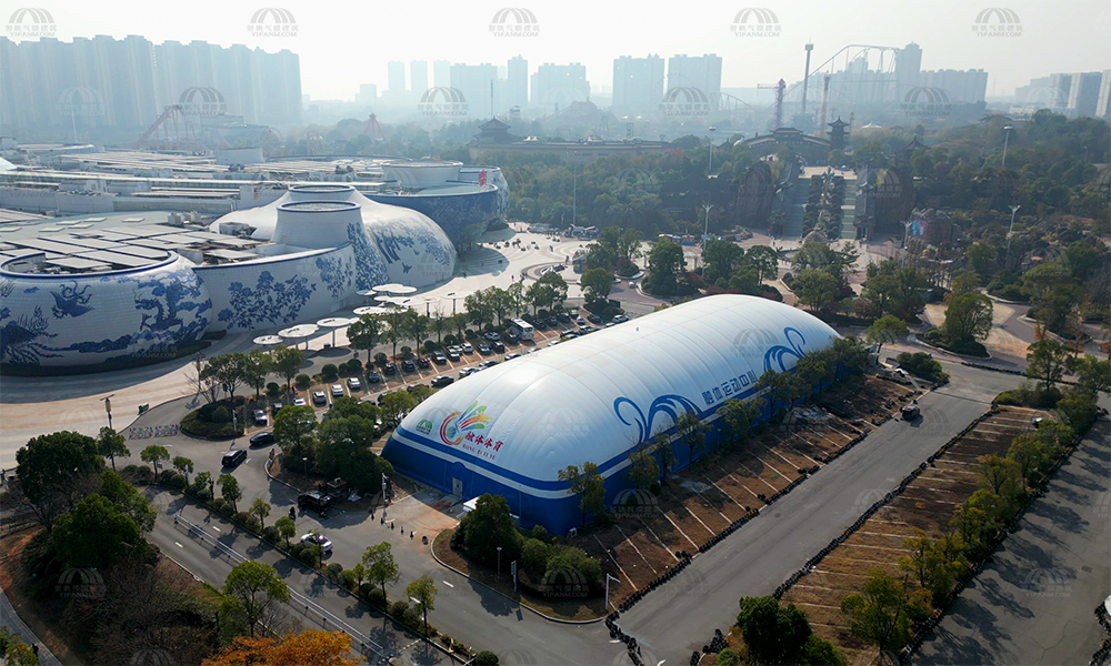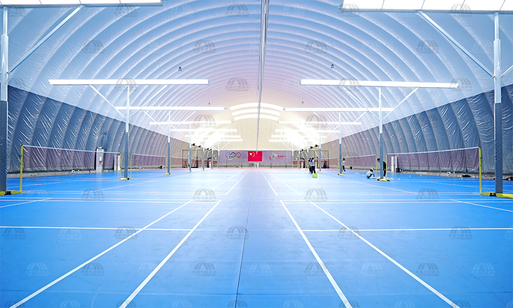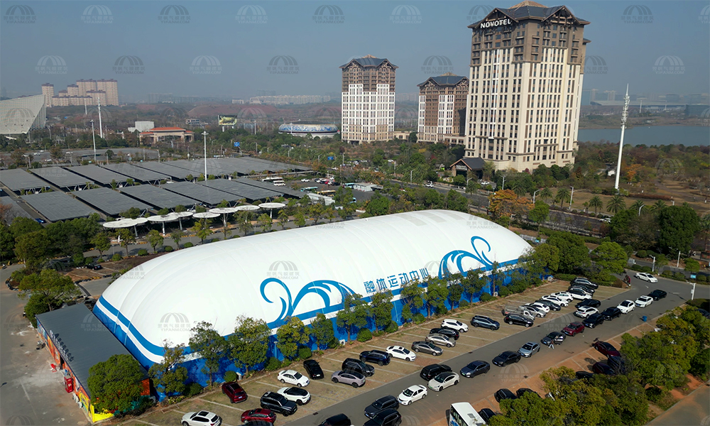 建筑时间:2025年 项目简介:南昌融体体育气膜运动馆作为我司2025年8月重点推进项目,总建筑面积达3000㎡,项目总工期仅50天,高效完成建设落地。场馆内部规划科学合理,设有14片标准羽毛球场地及2片篮球场地,可充分满足广大运动爱好者的多样化健身需求。 外观设计上,场馆以青花瓷经典的白、蓝为主色调,点缀祥云纹样,整体风格雅致典雅,与周边建筑外立面风格自然契合,形成和谐统一的城市景观。该气膜运动馆于12月12日正式开启试营业,凭借优质的场地条件、舒适的运动环境,一经开业便吸引了大批客流,赢得了运动爱好者的广泛青睐与一致好评。